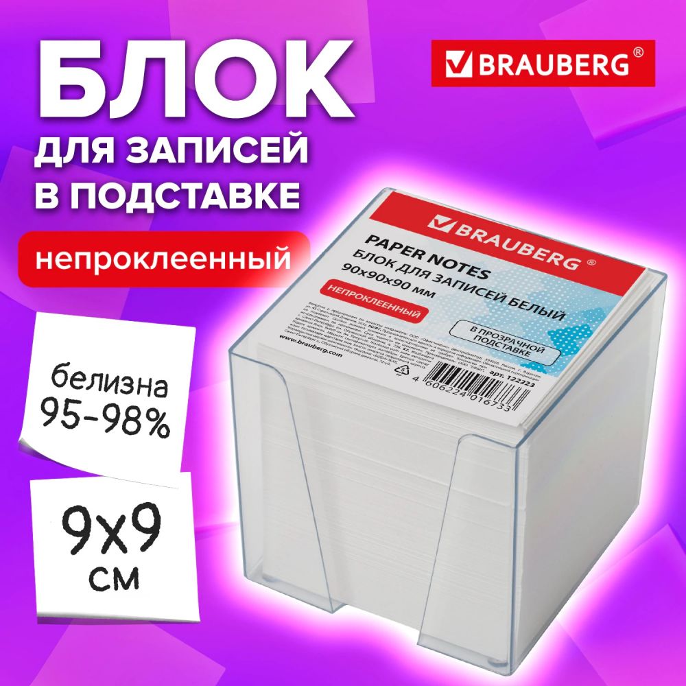 Блок для записей BRAUBERG в подставке прозрачной, куб 9×9х9 см, белый, белизна 95-98%, 122223