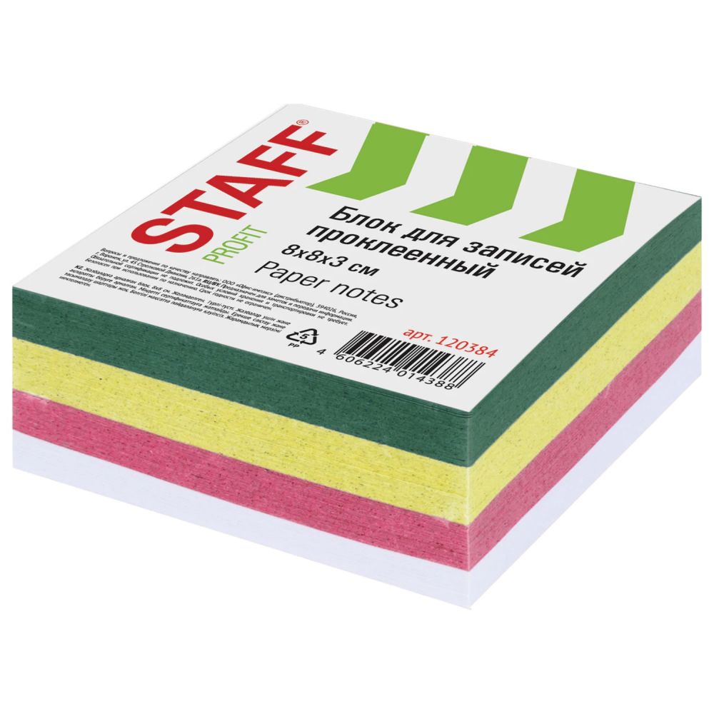 Главная » Каталог товаров » БУМАГА, ОФИСНЫЕ ТОВАРЫ » Бумажная продукция » Блоки для заметок » Блоки запасные » Блок для записей STAFF, проклеенный, куб 8×8 см, 350 листов, цветной, 120384