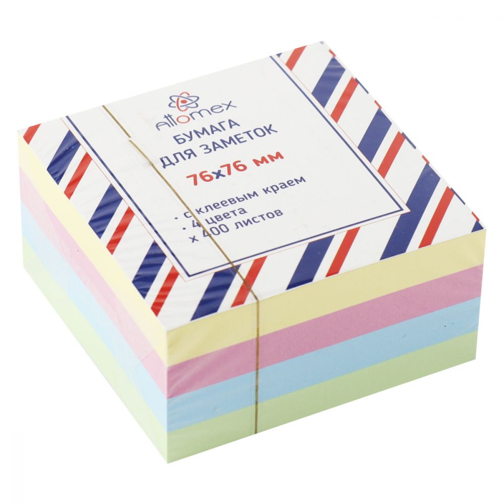 Клейкая бумага для заметок "Attomex" 76x76 мм, 400 листов, офсет 75 г/м², 4 пастельных цвета.