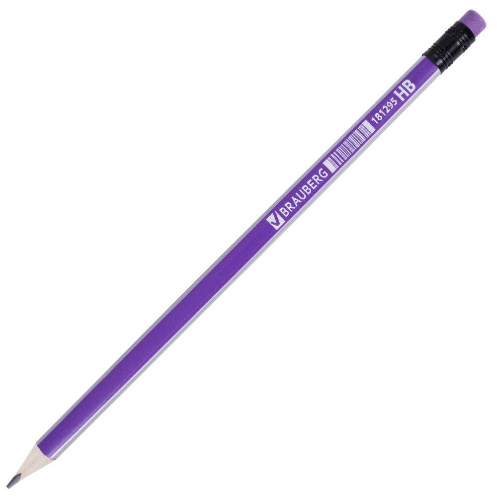 Описание Карандаш чернографитный BRAUBERG, 1 шт., «Lines», HB, трехгранный, с ластиком, фиолетовый/серебристый, 181295Чернографитный карандаш BRAUBERG «Lines» - первый помощник для выполнения проектно-конструкторских работ, позволяет сделать легкий набросок, быстрый стремительный рисунок или нарисовать полноценную картину.