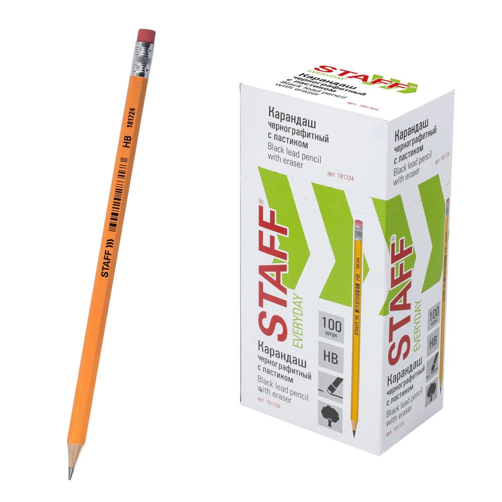 Другие фото Карандаш чернографитный STAFF «EVERYDAY» BLP-724, 1 шт., НВ, с ластиком, корпус желтый, 181724