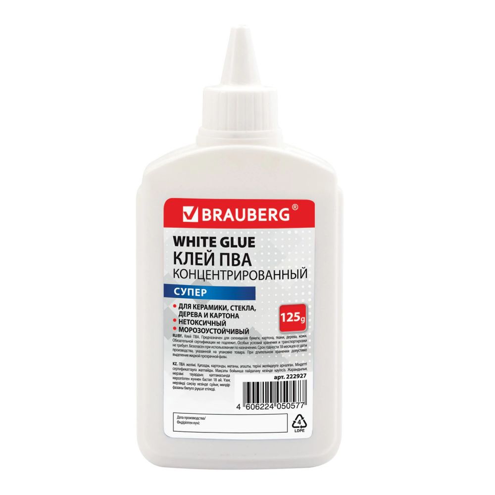 Описание Клей ПВА-СУПЕР BRAUBERG (керамика, ткань, кожа, дерево, бумага, картон), 125 г, 222927Клей ПВА СУПЕР BRAUBERG предназначен для склеивания изделий из керамики, ткани, кожи, дерева, бумаги, картона, фотографий.