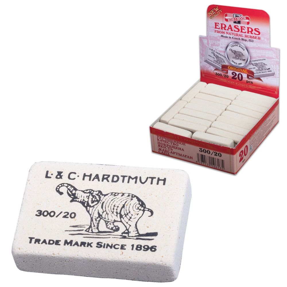 Описание Ластик KOH-I-NOOR «Слон» 300/20, 45×32×12 мм, белый, прямоугольный, натуральный каучукЛастик KOH-I-NOOR «Слон» известен многим и отлично подойдет для удаления надписей, сделанных карандашом.