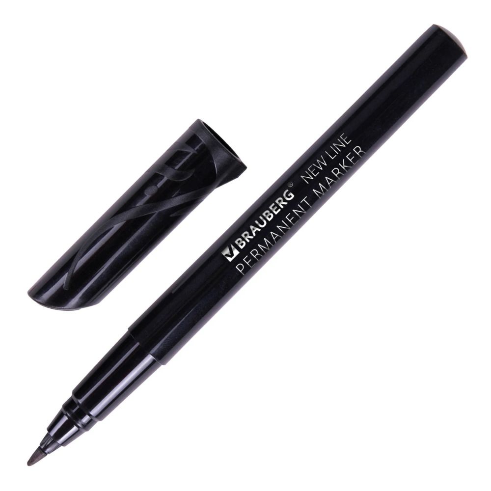 Описание Маркер перманентный BRAUBERG NEW LINE, ЧЕРНЫЙ, круглый наконечник 2 мм, 152209Высококачественный перманентный маркер BRAUBERG NEW LINE предназначен для письма на любой поверхности: бумага, полиэтилен, дерево, стекло, металл, натуральная кожа, ткань, камень, плитка.