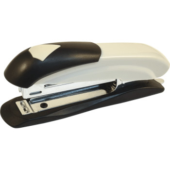 Описание Степлер "Attomex" № 10 , 12 листов, пластиковый, со встроенным металлическим антистеплером, серо-черный